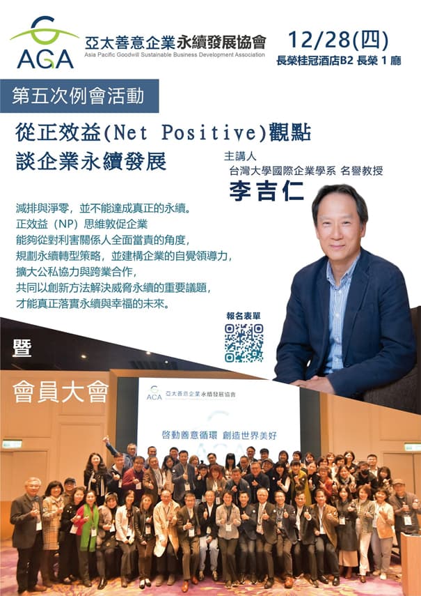 演講主題:從正效益(Net Positive)觀點談企業永續發展